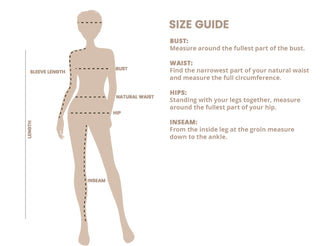 Here is our ‘how to measure’ to help you select your size. Each item has measurements under the description.